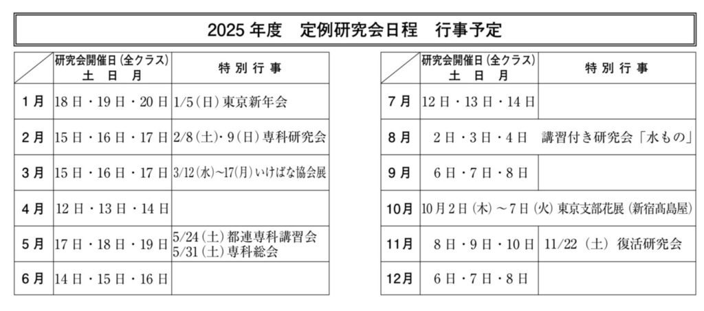 IKEBANA 2025.10.12 なごみ生け花教室(小原流)のご紹介 ■■■なごみ生け花教室(小原流)■■■ 1回毎チケット制 第1・3・4月・火(18:30~21:00) 2,000円/1レッスン(税込・花材別) ※花材は1,500円前後を予定しております。 ※月1から承ります。 研究会対策 土(9:30~12:00) 2,000円/1レッスン(税込・花材別) ※花材は1,500円~2,000円前後を予定しております。 ※研究会のある週の前の週の土曜日に行います。
